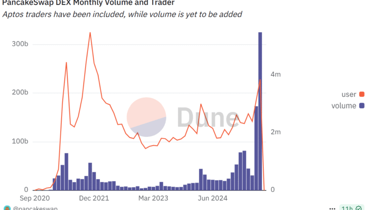 PancakeSwap, a multichain decentralized exchange (DEX), reported a record-breaking $325 billion in trading volume for June, the highest monthly trading volume in the platform’s five-year history.