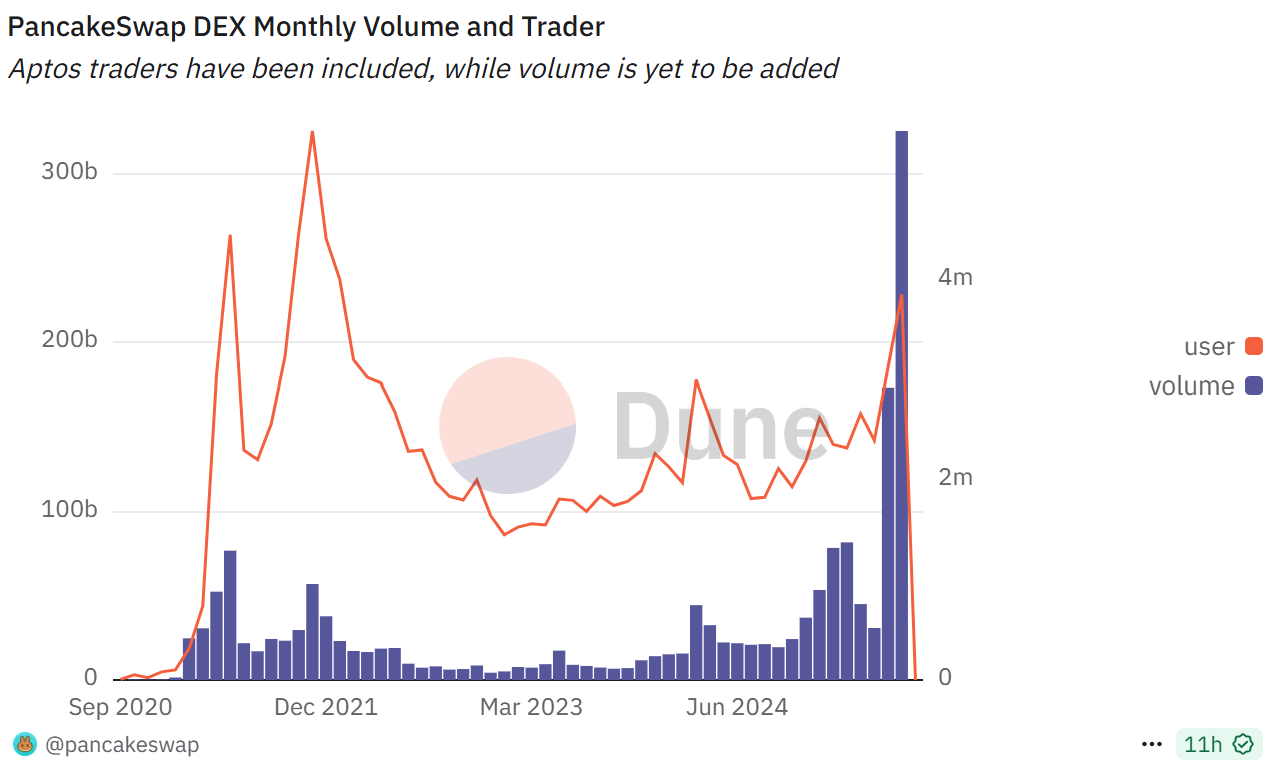 The surge in activity follows a series of recent upgrades, including the April rollout of PancakeSwap Infinity, which introduced several features designed to improve user experience and trading efficiency.