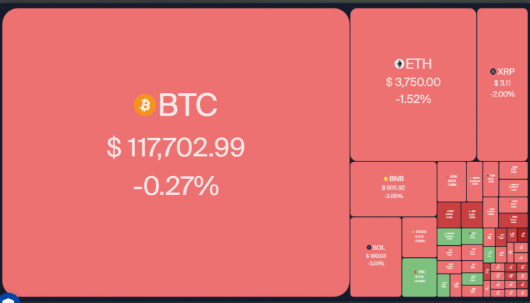ETH turned down from $3,941, but the bulls are trying to maintain the price above $3,745. That suggests the bulls are trying to flip the level into support.