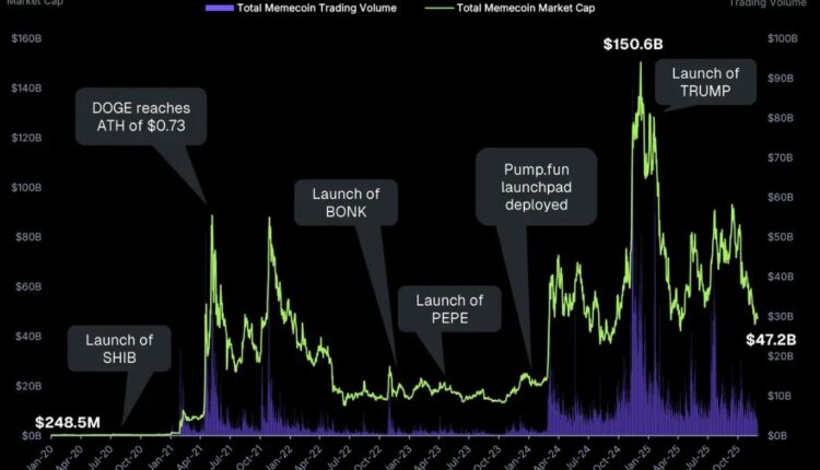 The report said that the same political momentum that fueled the memecoin rally to $150 billion later contributed to the sector’s decline.