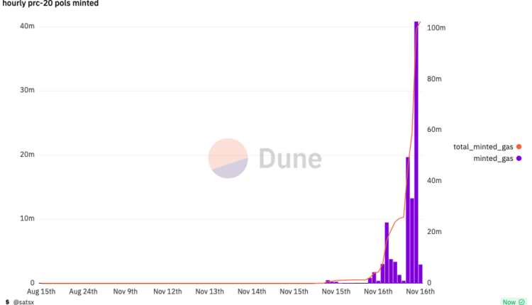 Dune Analytics data showed the rush of minting activity for POLS coincided with more than 102 million MATIC tokens — worth $86 million at current prices— being used as gas.