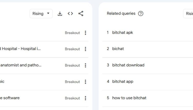 At the same time, phrases as “Bitchat download” and “how to use Bitchat” were among the top five related queries, and tagged as “breakout topics,” which means they had a “tremendous increase” in activity, according to Google.