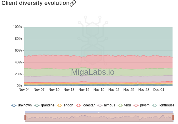 That represents a deterioration from before the incident, when Lighthouse was below 48.5% and Prysm around 22.71%, according to MigaLabs.