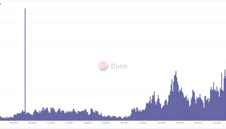 The daily number of tokens completing Pump.fun’s “bonding curve,” a prerequisite to listing on a decentralized exchange (DEX), is down to about 200 on Feb. 26 from as high as nearly 1,200 on Jan. 23 and 24, according to data from Dune Analytics.