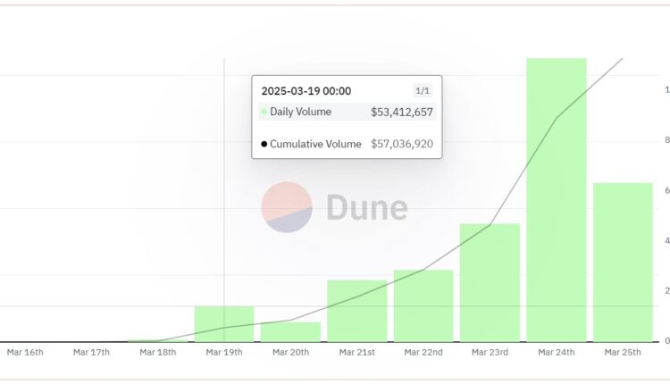 During its first day, the platform had a modest trading volume of about $50 million. On March 24, the volume spiked eight times, recording over $425 million in trading volume.