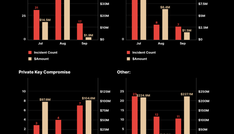 Within the report, CertiK highlighted 184 security incidents in July, August and September 2023, with over $699 million in crypto assets lost in the quarter, surpassing first-quarter losses of $320 million and second-quarter losses of $313 million.