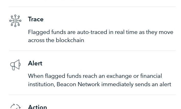Under the Beacon Network, verified members can flag wallet addresses suspected of financial crime, trace the funds across the blockchain, and share information with connected services and law enforcement.