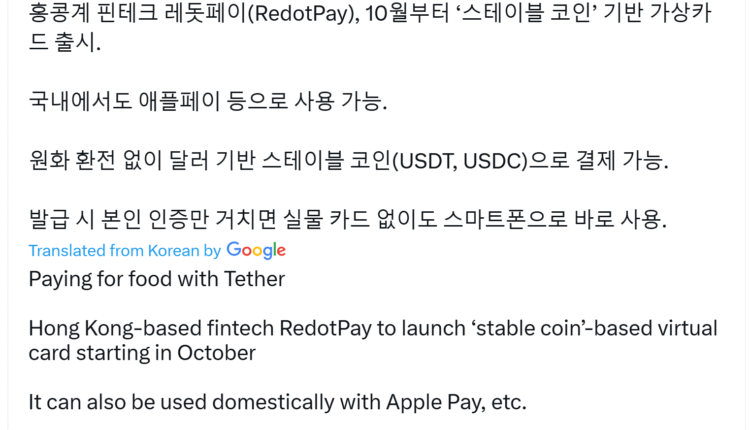 In May, RedotPay launched its crypto-enabled payment cards in South Korea, allowing users to make purchases at any Visa-supported merchant.