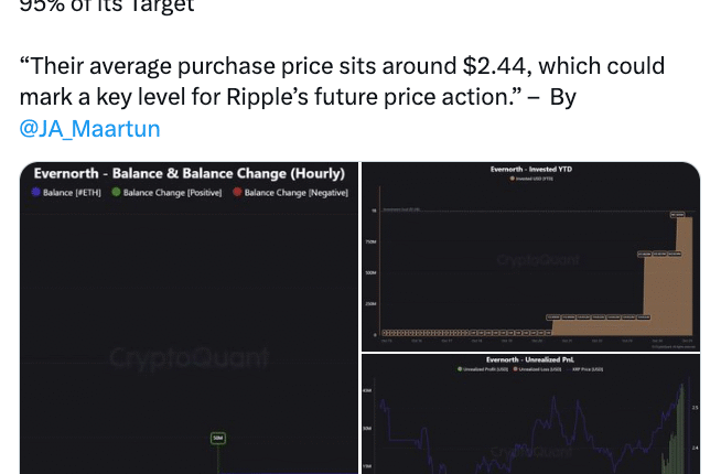 As of Monday, Evernorth’s XRP (XRP) holdings totaled 388.7 million tokens, according to data from digital asset analytics platform CryptoQuant.