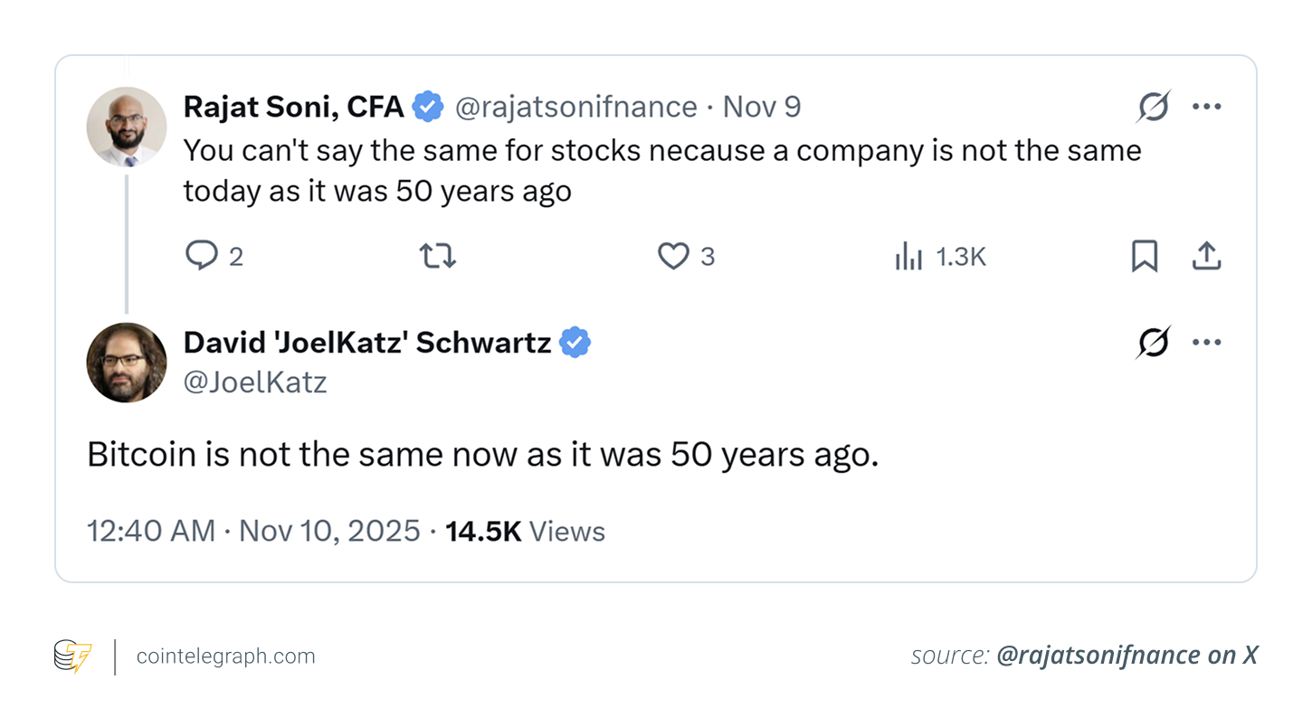 On November 10, 2025, Ripple chief technology officer David Schwartz posted a deadpan line on X: “Bitcoin is not the same now as it was 50 years ago.”