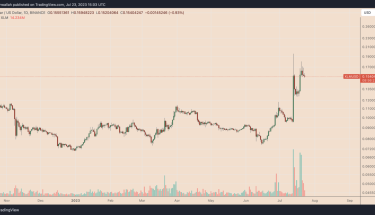 XLM price has risen over 60% since July 13, when a federal judge ruled that the XRP sales on public exchanges did not break U.S. securities laws. Still, the token is down about 20% from its local peak of $0.195 and was changing hands for about $0.154 on July 23.