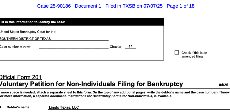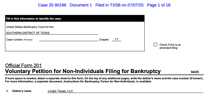 Linqto filed for bankruptcy with the US District Court for the Southern District of Texas on Monday.