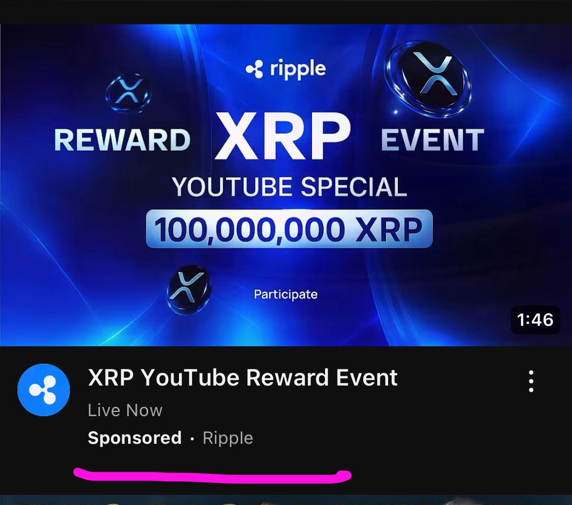 “This one looks very convincing. Scammers are using accounts with 176K subs to promote a fake 100M XRP event, Ripple will NEVER conduct giveaways. Stay cautious!” XtinaRP said.