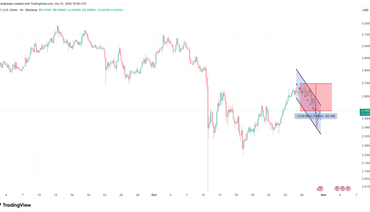 As Cointelegraph reported, continued rejection from the 20-day EMA at $2.53 will suggest that the bears are in control, risking XRP’s drop to $2.20 or lower.