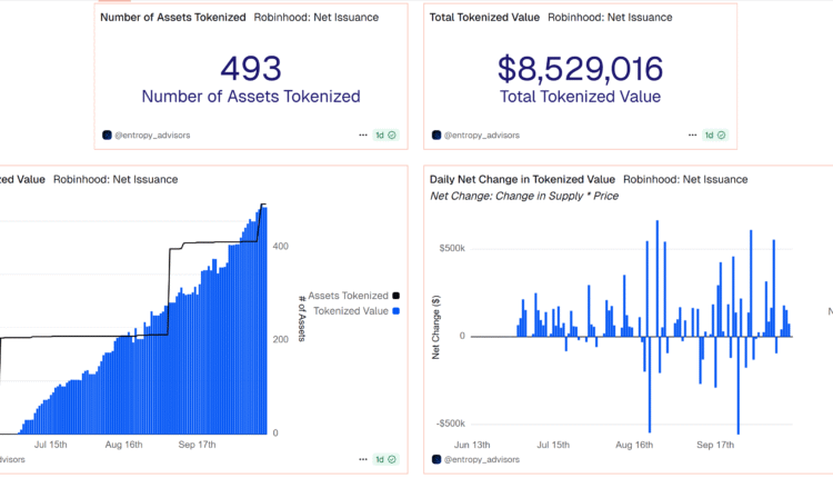 Robinhood has expanded its tokenization initiative on the Arbitrum blockchain, deploying 80 new stock tokens in the past few days and bringing the total number of tokenized assets close to 500.