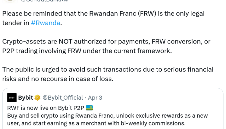 The central bank’s comments were in response to an X post from Bybit on Friday, stating that the Rwandan franc (FRW) can be used to buy and sell crypto through its Bybit P2P service.