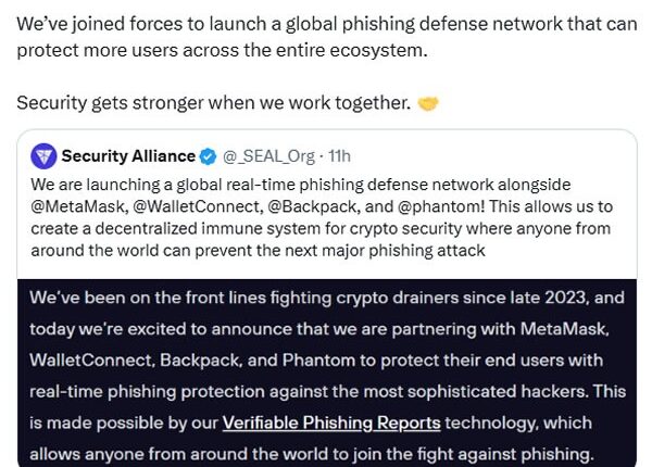 Working alongside SEAL allows wallet teams to be more agile and apply research to practice, “effectively throwing a wrench at the drainer’s infra,” he added