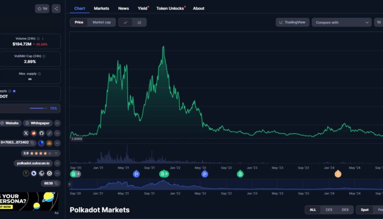 Polkadot is a layer-1 blockchain network launched in 2020. Its native token, DOT (DOT), has a market capitalization of approximately $6.6 billion as of April 24, according to CoinMarketCap.