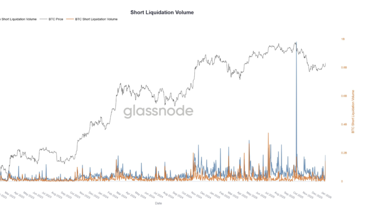 Short liquidations across crypto futures and perpetual contracts climbed to about $200 million on Wednesday, the highest level since roughly $1 billion in short positions were wiped out during the October market crash, according to data shared by analytics firm Glassnode. The firm said it was the biggest short liquidation event across the 500 largest cryptocurrencies since the Oct. 10 selloff.