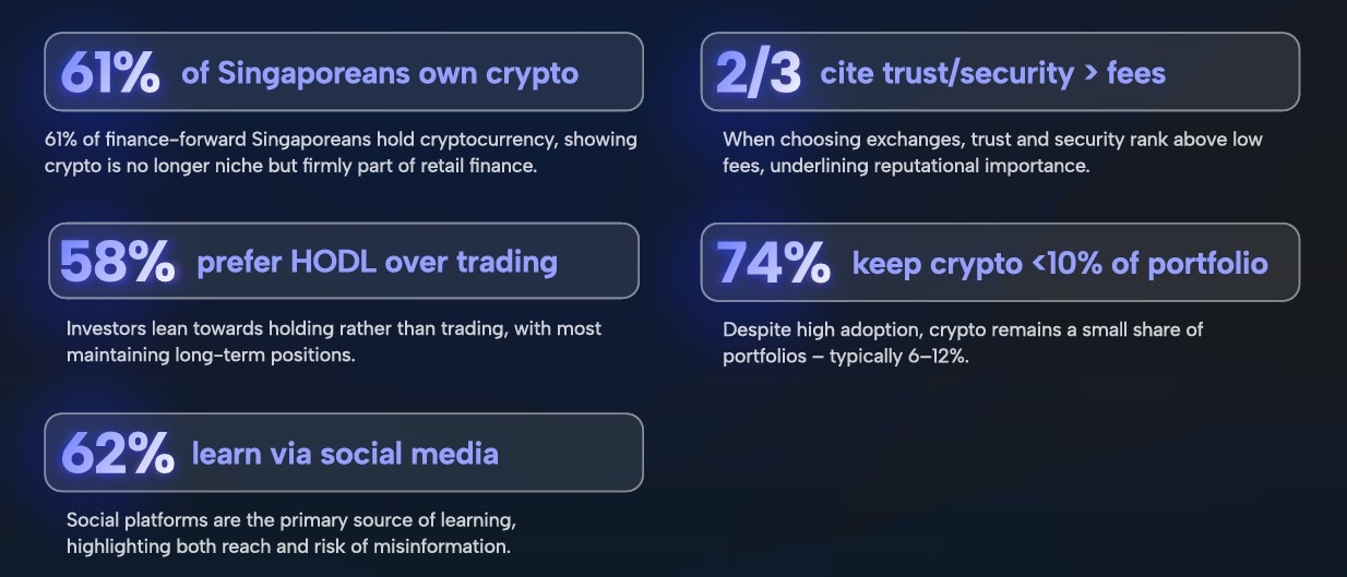 The study, which surveyed 3,513 retail investors and crypto-curious Singaporeans, also found that 58% self-identify as long-term holders, while 42% have held investments for over two years.