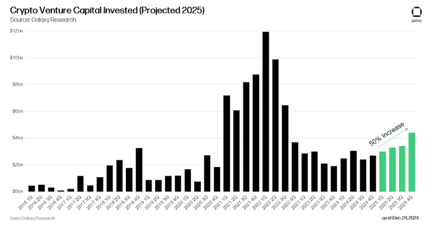 Blockchain and crypto projects will attract more private capital in 2025. Source: Galaxy Research