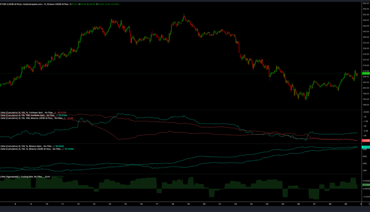SOL aggregate volumes show retail traders piling into spot positions as the altcoin rebounded from $190.