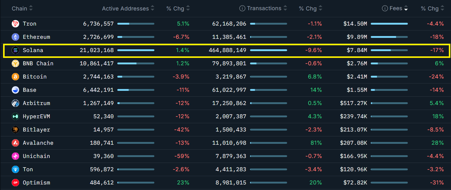 Blockchains ranked by 7-day fees. Source: Nansen
