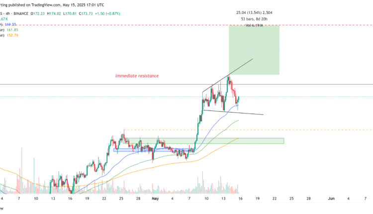 If momentum is sustained, the next target will be $210, representing a 21% rally from current prices. A break above $200 would also trigger a psychological level that could attract further buying pressure.