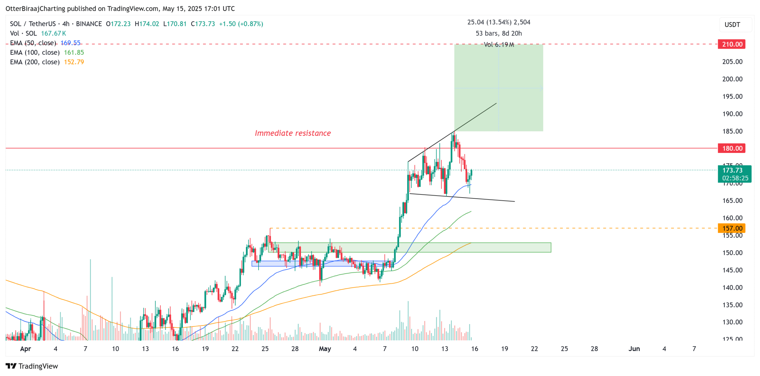 Solana (SOL) price tested its key resistance at $180 earlier this week, but the altcoin failed to establish a position above the level. Over the past few days, SOL has consolidated above the $170 mark, but prices have dropped 5.65% since May 14.