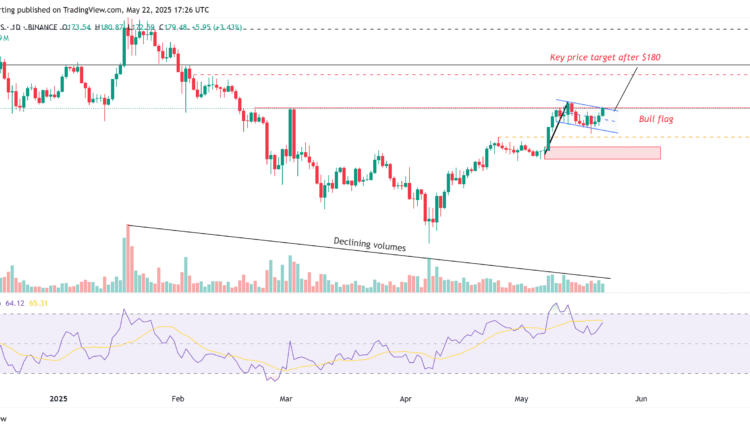 After briefly dropping to $160 from $184, Solana (SOL) is attempting to reclaim a position above its key resistance at $180 for a second consecutive week. With Bitcoin (BTC) hitting an all-time high, market speculators are banking on eventual capital rotation, which could pump major altcoins like SOL toward new highs.