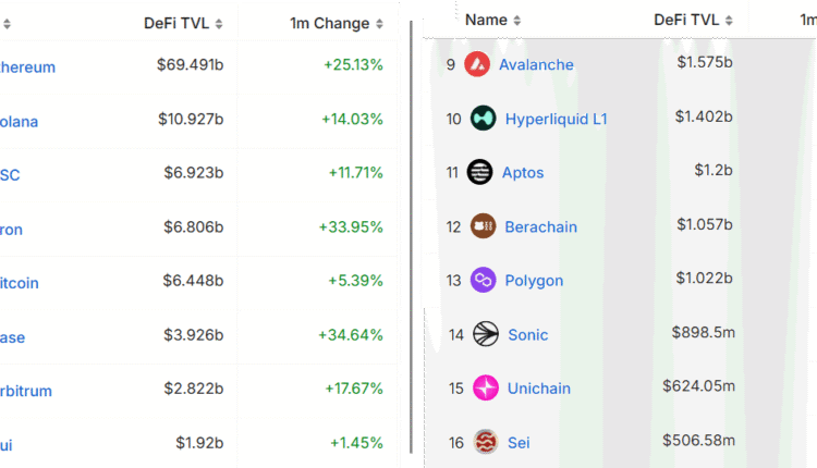 Blockchains ranked by TVL, USD. Source: DefiLlama
