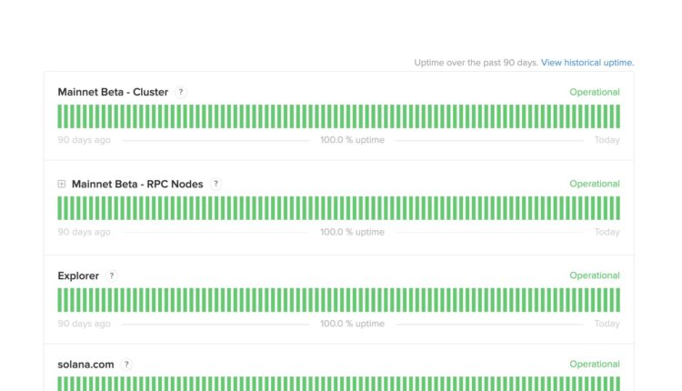 The latest report noted Solana has experienced 100% uptime since Feb. 25, marking a whole quarter without an outage. The single February outage saw the network knocked offline for almost 19 hours.