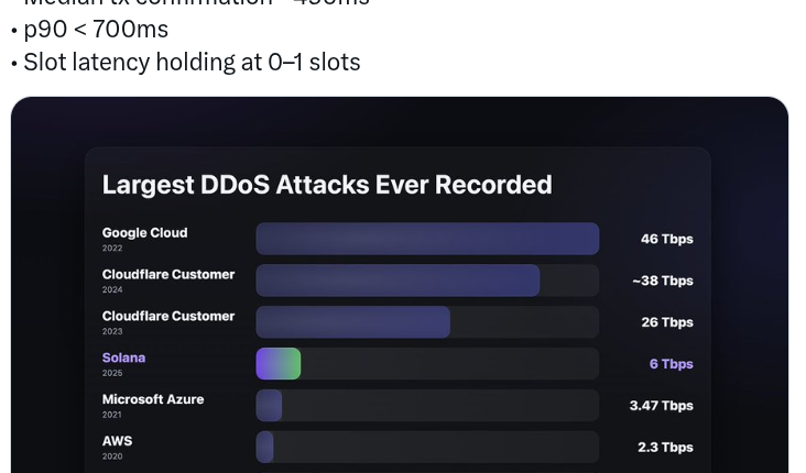 Solana co-founder Anatoly Yakovenko and several accounts tied to the network’s ecosystem said this week that Solana has been hit by a large distributed denial-of-service attack, with some posts citing traffic that peaked near six terabits per second (Tbps).