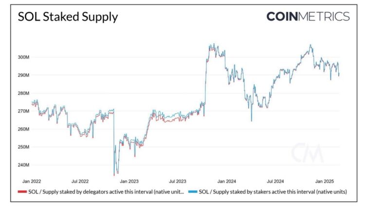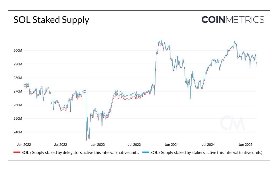 SOL’s staked supply has risen since 2023. Source: Coin Metrics