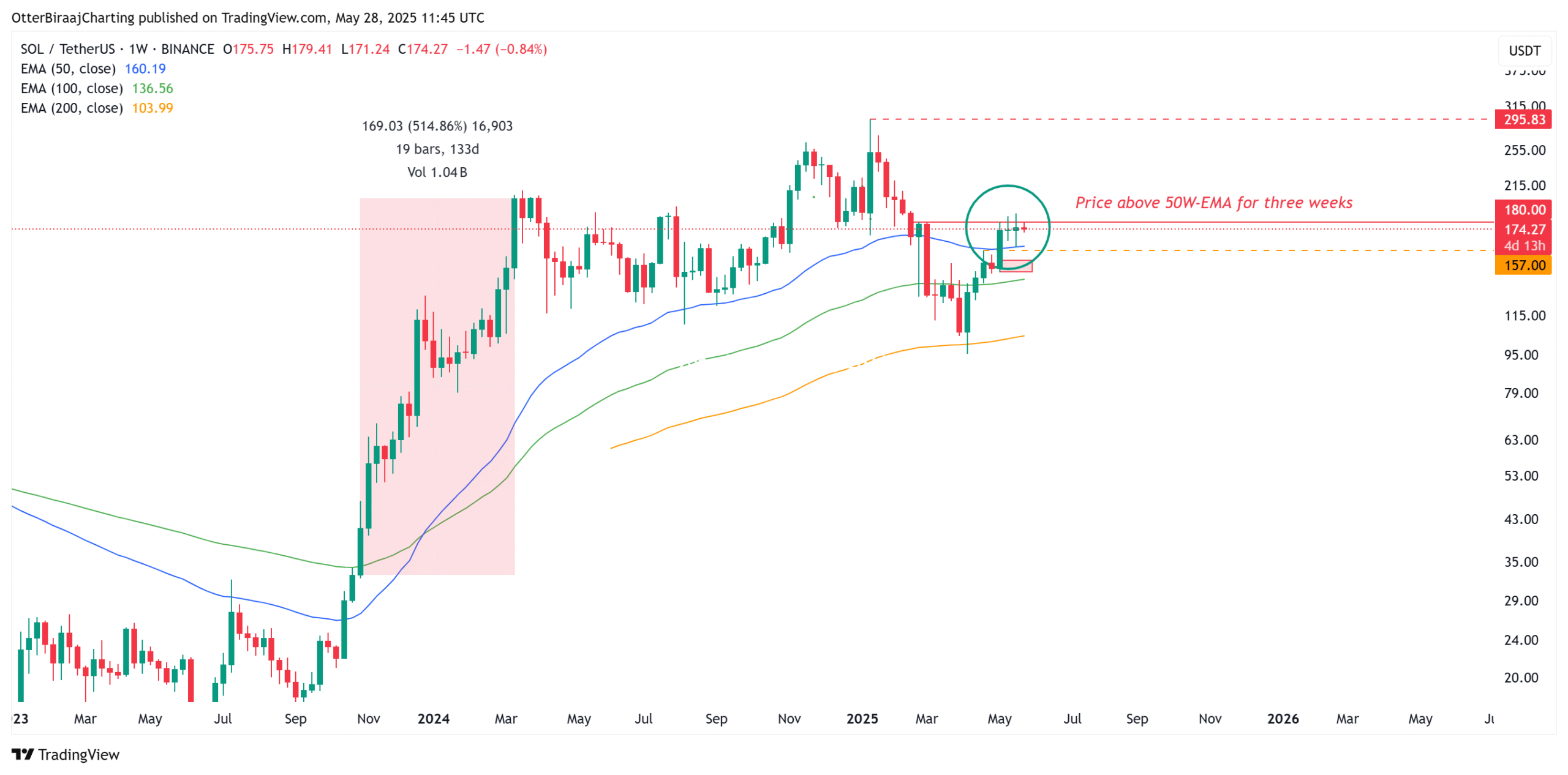 This setup mirrors past patterns where SOL broke above the 50-week EMA and rallied significantly. With current technicals aligning, SOL appears poised to retest the $300 level by late 2025, a key psychological and historical resistance.