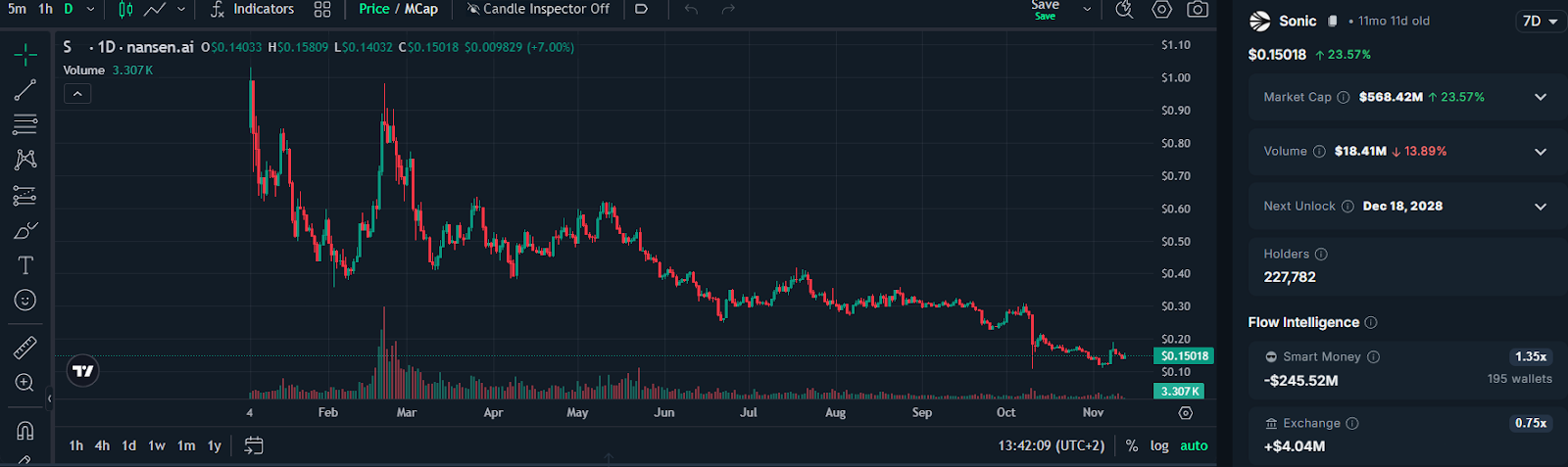 The news may come as a welcome sign for Sonic tokenholders. The token has been in free fall since the protocol rebranded from Fantom in January, with a decline of over 80% since the rebranding and more than 20% in just the past month, according to data from the crypto intelligence platform Nansen.