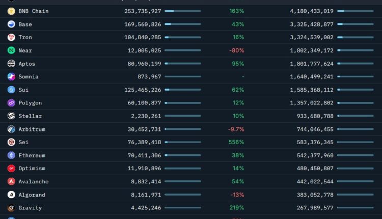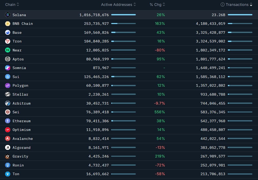Data from Soneium’s public block explorer shows the network has processed about 524 million transactions since its mainnet launch in January 2025. Over the same period, Nansen data shows Avalanche and Algorand recorded 442 million and 383 million transactions, respectively. Transaction counts alone do not indicate user adoption or economic activity.