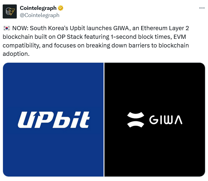 South Korean crypto exchange Upbit has announced the launch of Ethereum layer-2 Giwa on testnet — a move that could see it expand past its role as a crypto exchange.