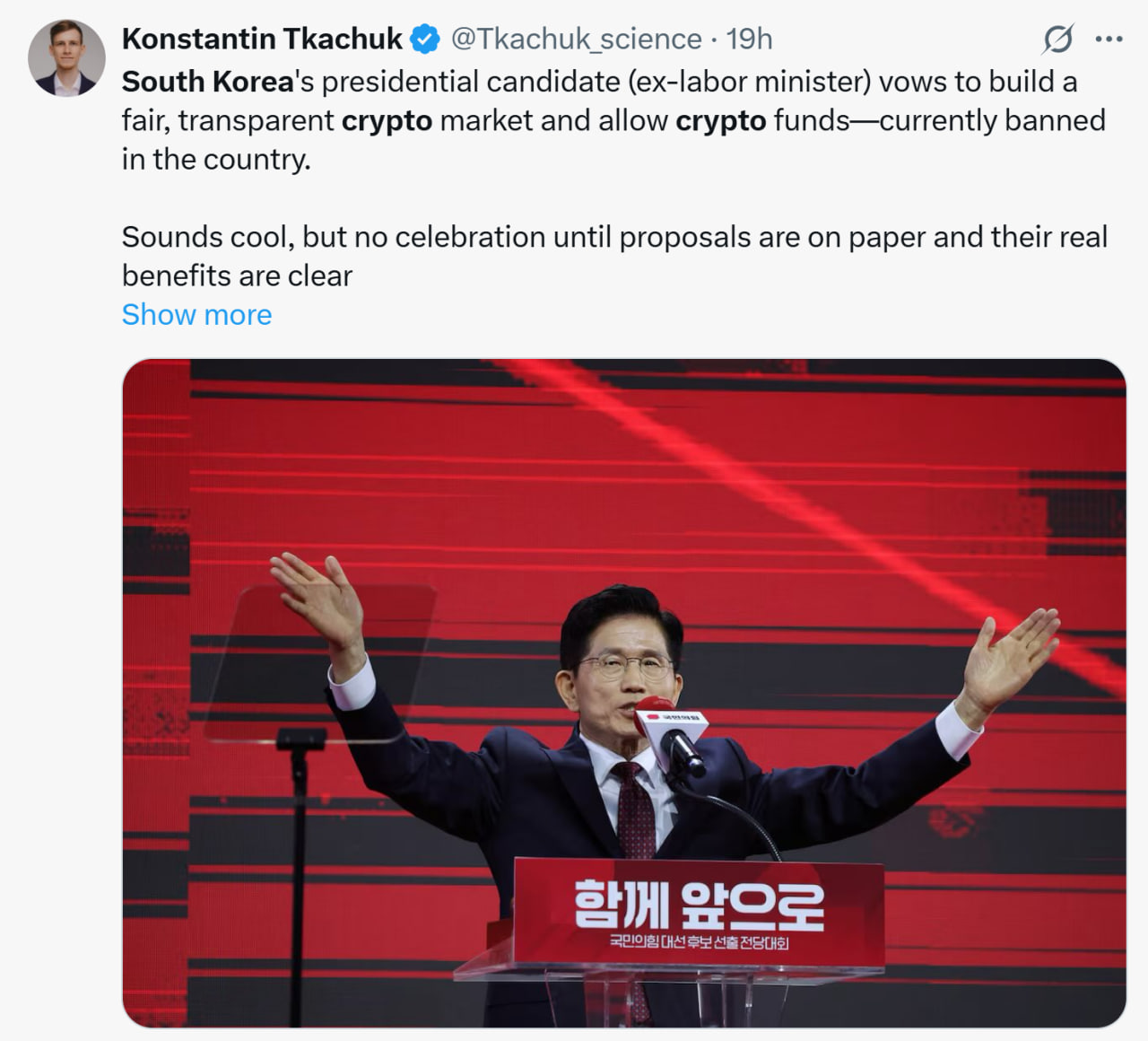 Related: Top South Korean presidential hopefuls support legalizing Bitcoin ETFs