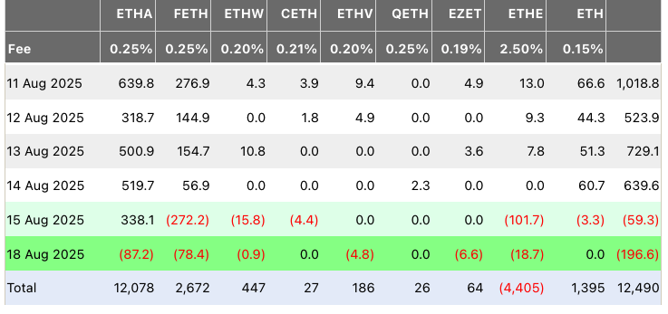 According to Farside data, BlackRock and Fidelity saw the largest ETH ETF outflows among issuers on Monday, totaling $87 million and $79 million, respectively.