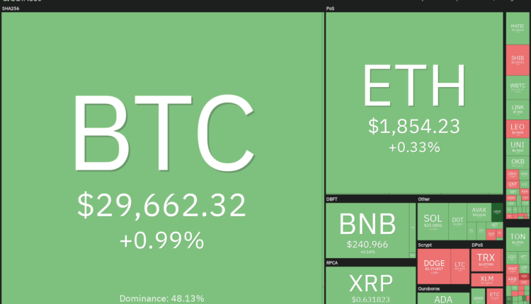 Bitcoin slipped below the 20-day EMA ($29,458) on Aug. 13 but the bears could not build upon this advantage and sink the price to the critical support at $28,585. This suggests a lack of aggressive selling at lower levels.