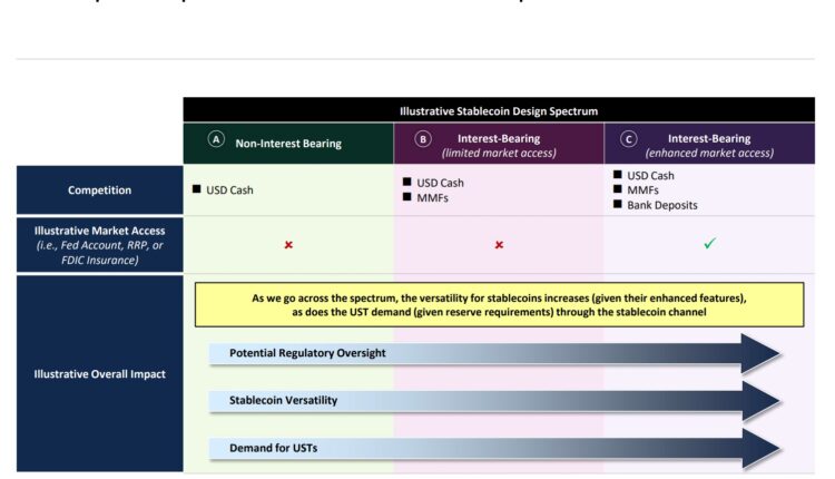 A stablecoin is a cryptocurrency whose value is pegged to a traditional asset like the US dollar. According to the report, such tokens are already “ubiquitously utilized as ‘cash on-chain,’ effectively serving as a new payment mechanism.”