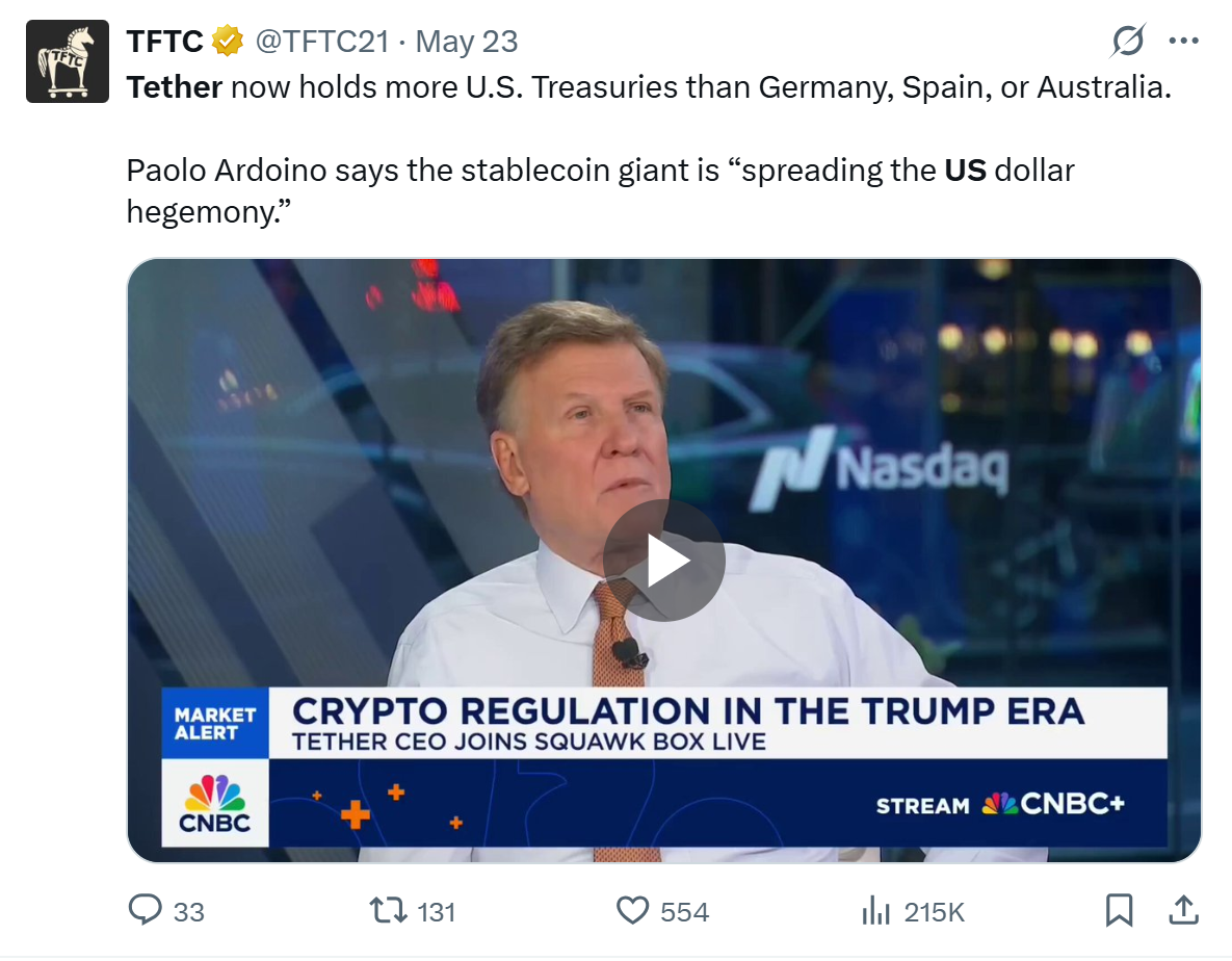 Tether holds more US Treasurys than Germany. Source: TFTC