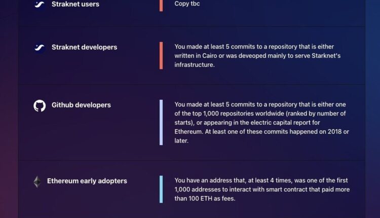 Screenshots disseminated online have been labeled “draft plans that are still under development.” A spokesperson from StarkWare told Cointelegraph that details of official criteria and the provision mechanism of STRK tokens will be shared once the company has finalized them: