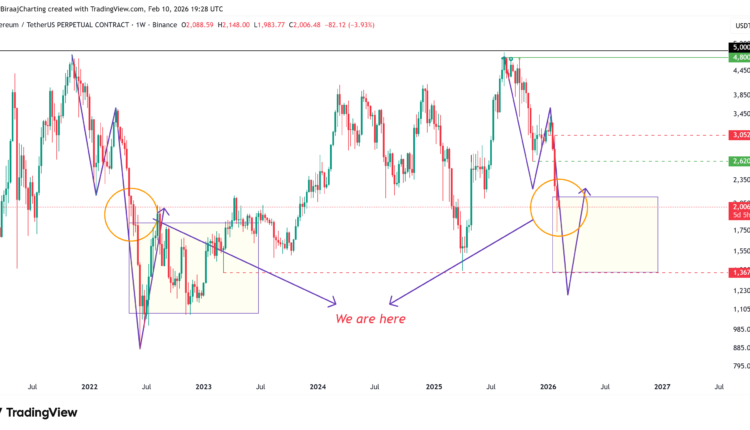 Ether (ETH) struggled to hold prices above $2,000 on Tuesday, and against this backdrop, analysts noted that Ether’s 31% decline in 2026 fits a familiar price fractal from previous bull markets.