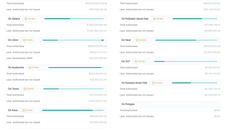 Tether’s reserves report as of Aug. 24 reveals a combined surplus in shareholder capital cushion of $3.29 billion — spread over 15 blockchain ecosystems. Apart from Algorand and Polygon, Tether has reserved authority to issue USDT (USDT) tokens in the millions.