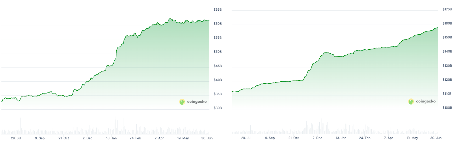 According to data from CoinGecko, USDC saw its market cap surge as much as 88% in the past year from around $33 billion to its current $61.7 billion. In the meantime, USDT increased its market value by 40% over the same period, from $112.5 billion to $158.3 billion.