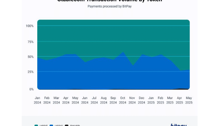 “In 2024, USDC was the token most commonly used. However, starting in March of 2025, USDT gained a sizable share of transaction volume, exceeding 70% of stablecoin volume processed by BitPay,” the crypto payment firm reported.
