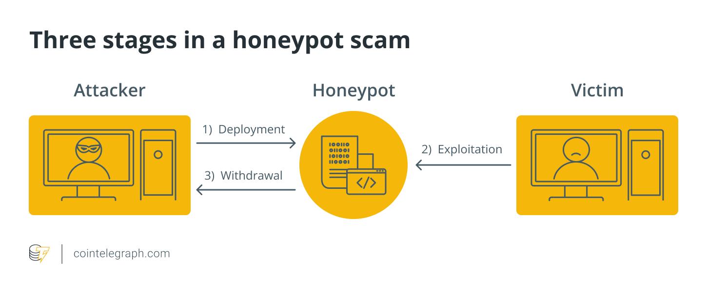 Honeypot scams in crypto are designed to trap investors by using smart-contract trickery. They follow a three-stage process, and understanding how it works can help you avoid losing your funds.