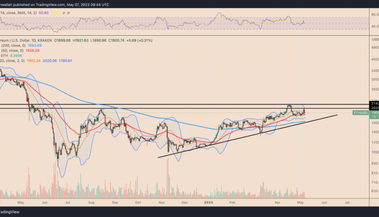 As a result of this support, ETH bulls may attempt to take the price above $2,000 again.